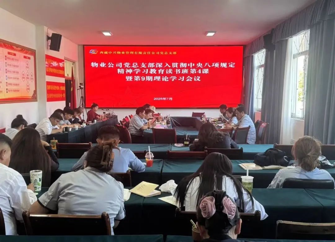 ???????????????????????????????????????????????????????????????????????????西藏中興物業(yè)管理有限責(zé)任公司黨總支部近期組織開(kāi)展中央八項(xiàng)規(guī)定精神學(xué)習(xí)教育讀書(shū)班第4課暨第9期理論學(xué)習(xí),由黨總支書(shū)記劉茂軍同志主持,會(huì)議深入學(xué)習(xí)了《習(xí)近平關(guān)于加強(qiáng)黨的作風(fēng)建設(shè)論述摘編》,并進(jìn)行了交流研討。此次學(xué)習(xí)活動(dòng)旨在強(qiáng)化黨員干部對(duì)黨的作風(fēng)建設(shè)的深刻理解,提升黨性修養(yǎng),密切黨群關(guān)系。